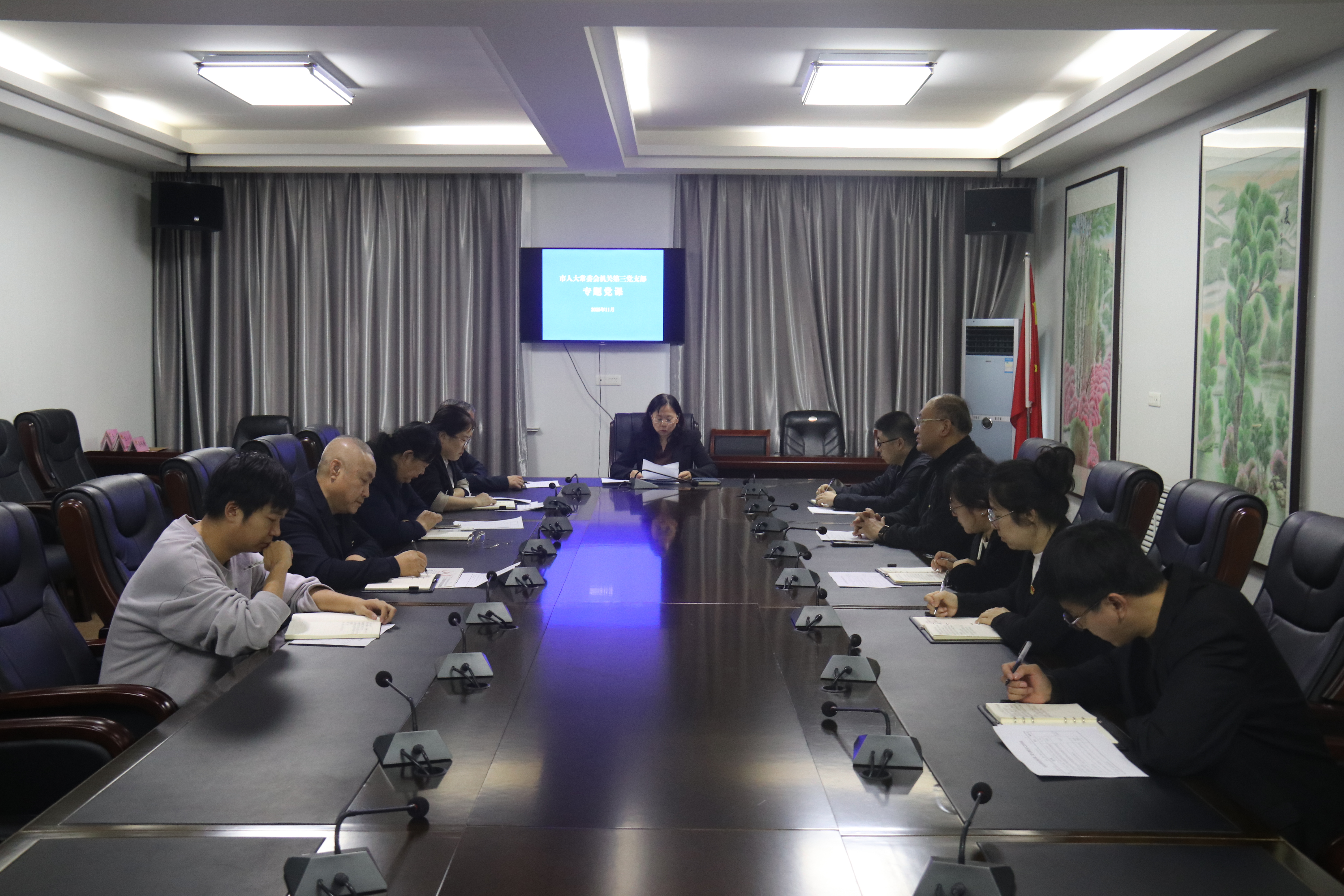 第三党支部开展专题党课活动,党支部书记于玲以《守正创新务实担当切实做好新时代人大工作》为题,围绕深入学习贯彻党的二十届四中全会精神,牢牢把握正确政治方向;以强烈的责任担当,融入中国式现代化实践;切实扛起全会赋予的职责使命,推动人大工作高质量发展;以务实的工作举措,深入践行全过程人民民主等四个方面内容,为支部党员作专题党课辅导,激励支部党员学习好、贯彻好全会精神,把学习成果转化为履职动力,推动全会部署要求在人大机关落实见效。