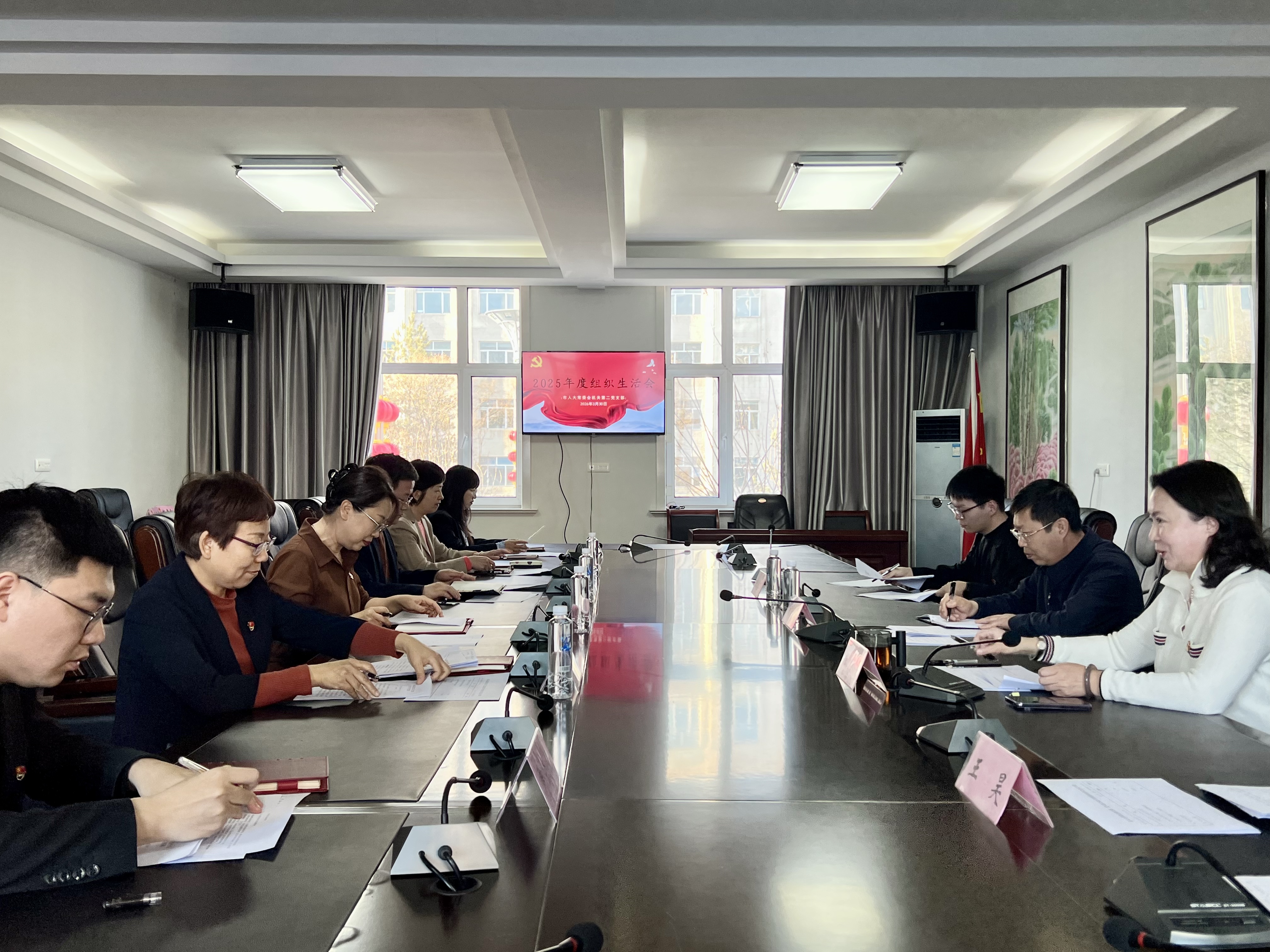 3月30日,市人大常委会机关第二党支部召开2025年度组织生活会。党支部书记王晔主持会议,市人大常委会机关党委委员列席会议。市人大常委会党组成员、副主任段志刚以普通党员身份参加组织生活会,带头开展批评和自我批评,与支部党员一同交流思想、查摆问题、明确方向。会上,党支部书记代表支委会作2025年度支部工作总结和对照检查,支部党员结合自身思想、工作实际,逐一开展批评与自我批评,达到了互相帮助、共同提高的效果。会议严格按照程序开展了民主评议党员工作。