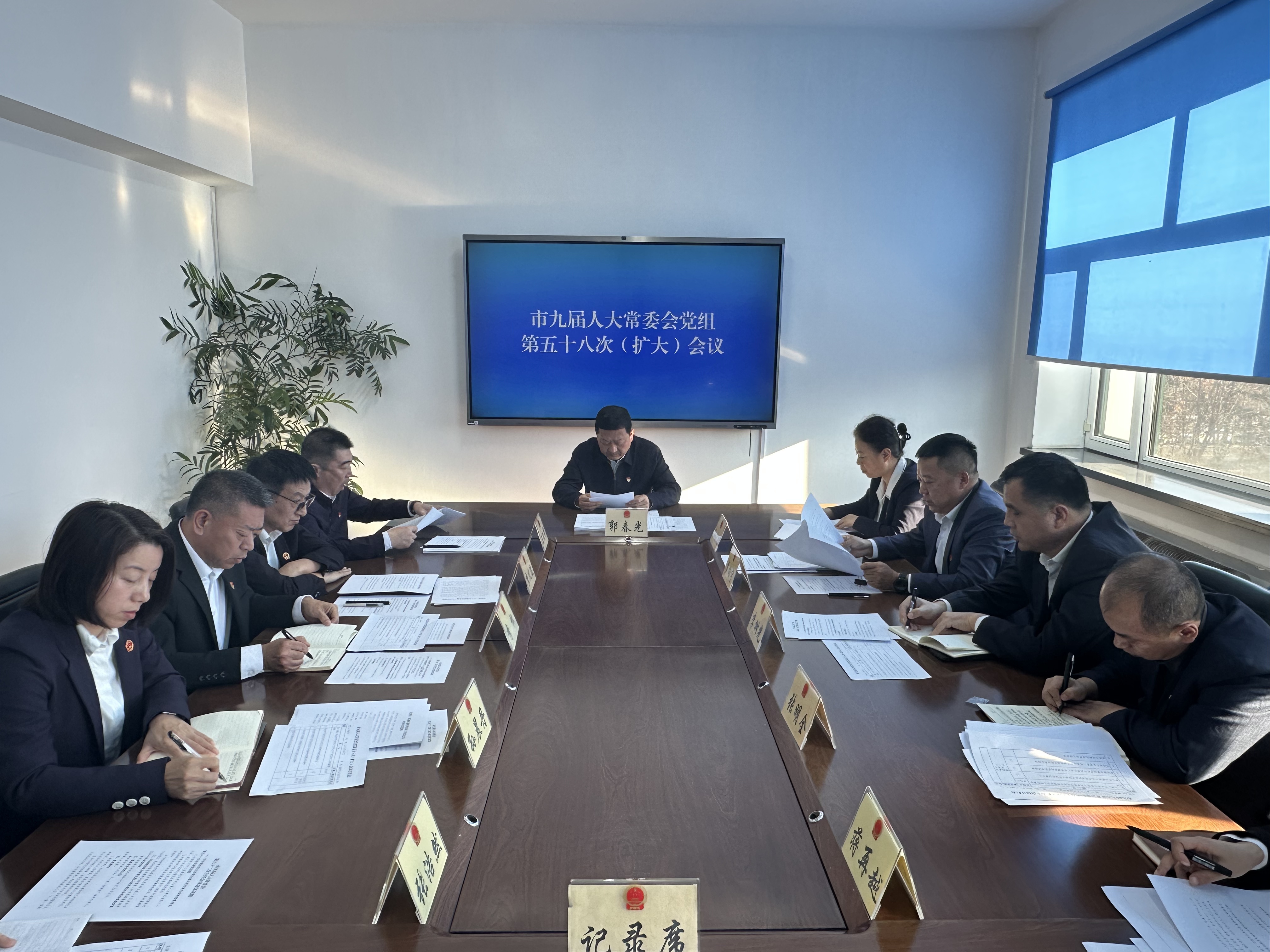 近日,铁力市九届人大常委会党组召开第五十八次(扩大)会议。铁力市人大常委会党组书记、主任郭春光主持会议并讲话,党组成员王跃军等出席会议,副主任孙力艳及各委办负责人列席会议。