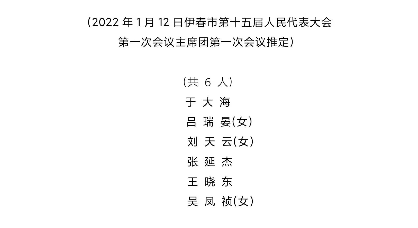 伊春市第十五届人民代表大会第一次会议主席团常务主席名单