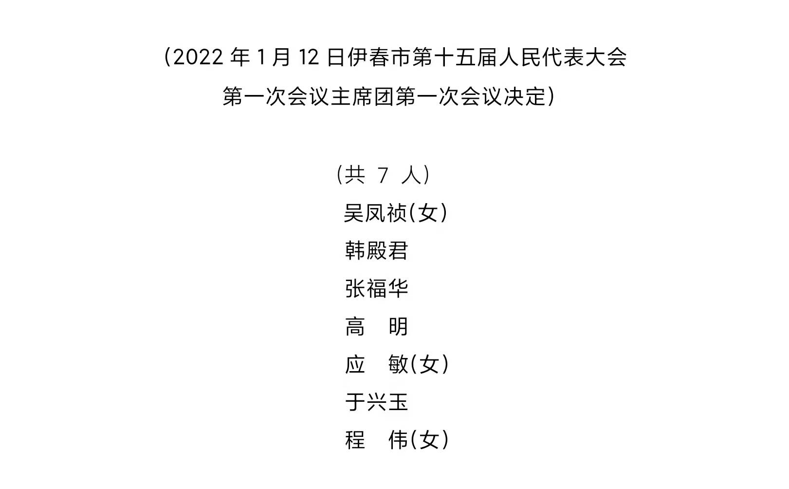 伊春市第十五届人民代表大会第一次会议副秘书长名单